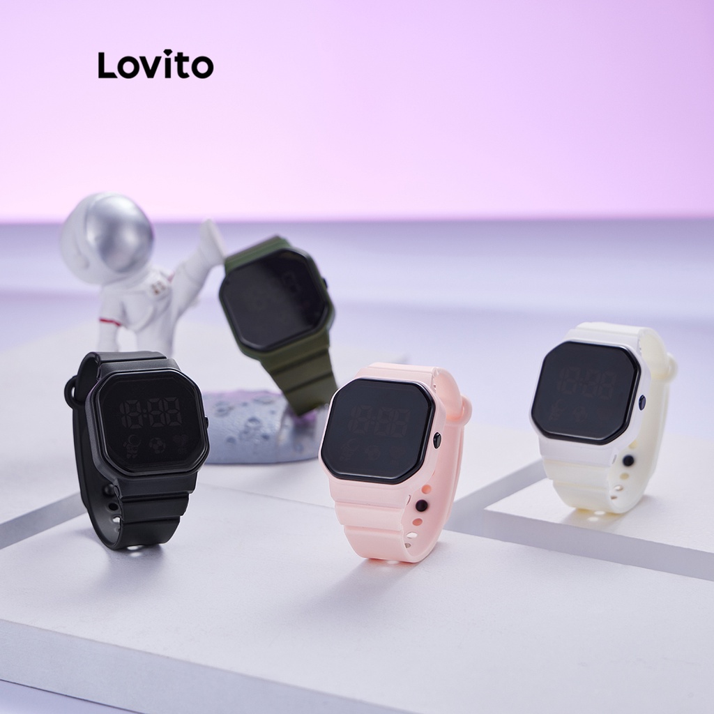 Lovito Relógio Eletrônico forma quadrada decoração coração batimento Verde Escuro Branco Rosa Preto Mulheres LSP01001 - 46% OFF | Watches