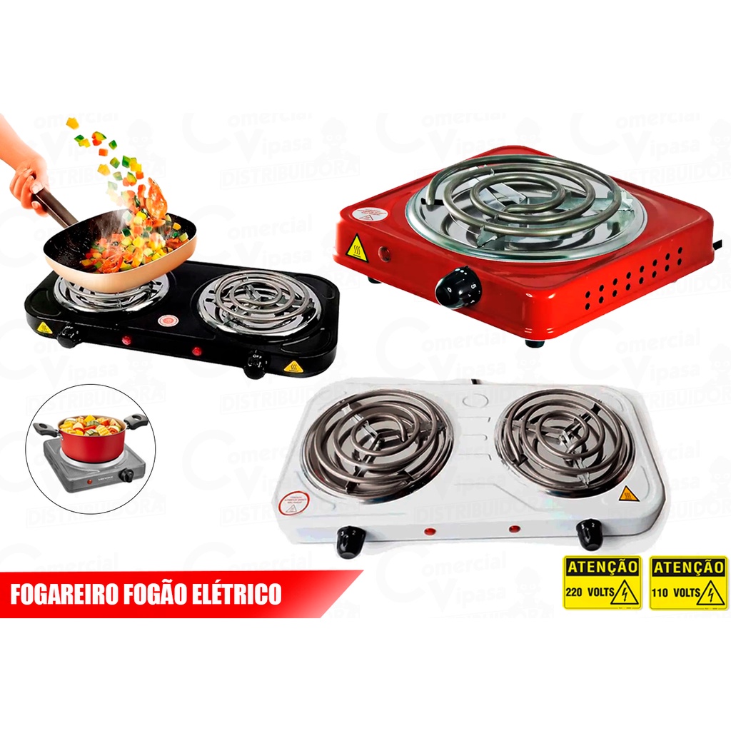 COMERCIAL VIPASA DISTRIBUIDORA. Mini Fogão Fogareiro Elétrico 5 Níveis Temperatura Portátil Camping Pesca Ar Livre Sobrevivência Mini Fogão Fogareiro Elétrico 5 Níveis Temperatura Portátil Camping Pesca Ar Livre Profissional Descrição Mini Fogão Fogareiro Elétrico 5 Níveis Temperatura Portátil Camping Pesca Ar Livre 110-220v Profissional Fogão Fogareiro Elétrico 2 Bocas Camping 110 ou 220 volts Fogão Elétrico Fogareiro 1 Bocas Camping 110 v ou 220 v (Não é bivolt, precisa escolher a voltagem). É super seguro e prático. Ideal para preparar refeições. Possui base em aço e resistência isolada por cerâmica refratária. Cabo de alimentação em PP, Possui excelente utilidade na cozinha. Super seguro pois não tem chama - Leve e prático para carregar - Não necessita trocar/utilizar refil. Características: - Potencia 1000W E 2000W - Chave de liga e desliga por boca. Recomendações na utilização: *Produto desenvolvido para uso comercial leve, portanto não convém deixá-lo ligado por um período superior a 2 horas. * Sugerimos utilizar vasilhas com fundo reto e tampa, para agilizar o tempo de operação e redução de energia. * Nunca mergulhe esse aparelho em água ou outro líquido, evitando assim acidentes. * Nunca deixe cair água sobre a resistência, pois a mesma poderá romper. * Tempo para ferver 1 litro de agua: até 15 minutos. * Para substituir a resistência, basta soltar os 2 parafusos de fixação. Um mini fogareiro portátil é um equipamento compacto e leve projetado para fornecer uma fonte de calor para cozinhar ou aquecer alimentos durante atividades ao ar livre. Geralmente utilizado em acampamentos, caminhadas, piqueniques ou viagens, esse dispositivo é uma solução conveniente para quem deseja preparar refeições simples em ambientes externos. O mini fogareiro portátil é projetado para ser fácil de transportar e armazenar. Ele é compacto e muitas vezes pode ser dobrado ou desmontado para ocupar o mínimo de espaço possível na mochila ou na bagagem. Geralmente construído com materiais leves, como alumínio ou aço inoxidável, o fogareiro é resistente o suficiente para suportar condições adversas ao ar livre. Isso inclui variações de temperatura, umidade e possíveis impactos durante o transporte. COMERCIAL VIPASA DISTRIBUIDORA.