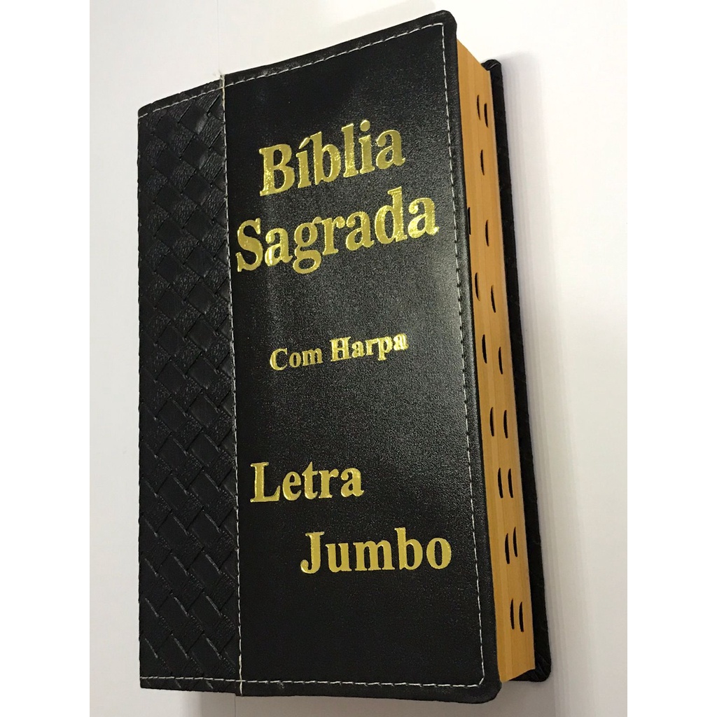 BÍBLIA SAGRADA LETRA JUMBO - CAPA LUXO - C/ HARPA - REVISTA E CORRIGIDA Letra Jumbo - A maior do mercado Capa em tecido semi-impermeável de ótima qualidade. Letra JUMBO que facilita a leitura para pessoas com problemas de visão e com uma grafia simplificada onde fica mais fácil entender os textos. ESPECIFICAÇÕES DO PRODUTO: - Papel Branco - Novo e Velho Testamento - Com Índice Lateral - 1.639 Paginas + Harpa e Corinhos - Tamanho: 19x25 A versão João Ferreira de Almeida Revista e Corrigida é uma das mais fiéis das Escrituras originais que se tem acesso no Brasil. Com uma linguagem rica é também uma das mais usadas e conhecidas no país, servindo de base para diversas outras que estão no mercado. Com uma linguagem única, elegante e profunda, esta tradução tem a missão de trazer a Palavra de Deus para aqueles que têm sede de compreendê-la.