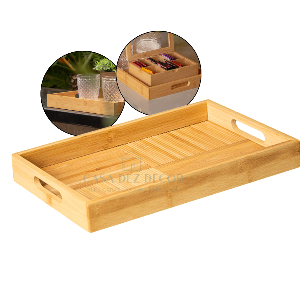 Bandeja de Bambu Retangular com Alça Reta – 36cm x 22cm x 5cm Leve mais charme e praticidade para o seu dia a dia com esta elegante bandeja de bambu. Com um design moderno e funcional, ela é perfeita para servir café da manhã, organizar objetos ou compor uma decoração sofisticada. Fabricada em bambu natural, material resistente, ecológico e de fácil limpeza, a bandeja possui alças retas que garantem mais firmeza no manuseio. Seu acabamento é suave ao toque, valorizando a textura da madeira e proporcionando um toque acolhedor e contemporâneo ao ambiente. Ideal para: Servir bebidas, petiscos e refeições rápidas Compor bandejas decorativas em mesas, aparadores ou camas Organizar perfumes, velas e acessórios Dimensões: 36cm (C) x 22cm (L) x 5cm (A) Material: Bambu natural Cor: bambu de tonalidade clara Sofisticação e funcionalidade em um só item!