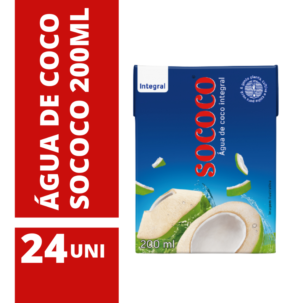ESSE KIT CONTÉM 24 UNIDADES DA ÁGUA DE COCO - SOCOCO 200ML °Definição de Água de coco: Água de coco e a bebida não diluída, não fermentada, obtida da parte líquida do fruto do coqueiro (Cocos nucifera L.), por meio de processo tecnológico adequado. É o produto obtido a partir da água de coco natural processada termicamente em sistema UHT °Designação: Água de Coco Integral. °Características Organolépticas: Aspecto - Turvo – Transparente à translúcido. Cor - Opaca, levemente esbranquiçada – Própria. Odor e sabor - Levemente adocicado, próprio ° Características Físico-Químicas: pH 4 - 6,5 Teor de Gordura Máx. 0,1% Sólidos solúveis 4,2 - 7,0 ºBrix Potássio 140 - 230 mg/100 ml Sódio 2 - 30 mg/100 ml °Informação de Glúten: Não contém glúten. °Ingrediente: Água de coco integral e antioxidante INS 223 Nota: SEM ADIÇÃO DE AÇÚCARES ° Informação de OGM: Livre de Organismo Geneticamente Modificado ° Segurança do Alimento: Alérgenos – Não contém (De acordo com a RDC 727/2022). OGM - Livre de OGM. Lactose – Não contém. Pesticida – Atende a Legislação Nacional (RDC 165/03). Contaminantes Inorgânicos – Atende a Legislação Nacional (IN 160/22). Macro e Microscopia – Atende a Legislação Nacional (RDC 623/22). Irradiação – Produto não irradiado. Aflatoxina e Ocratoxina – Atende IN 160/22