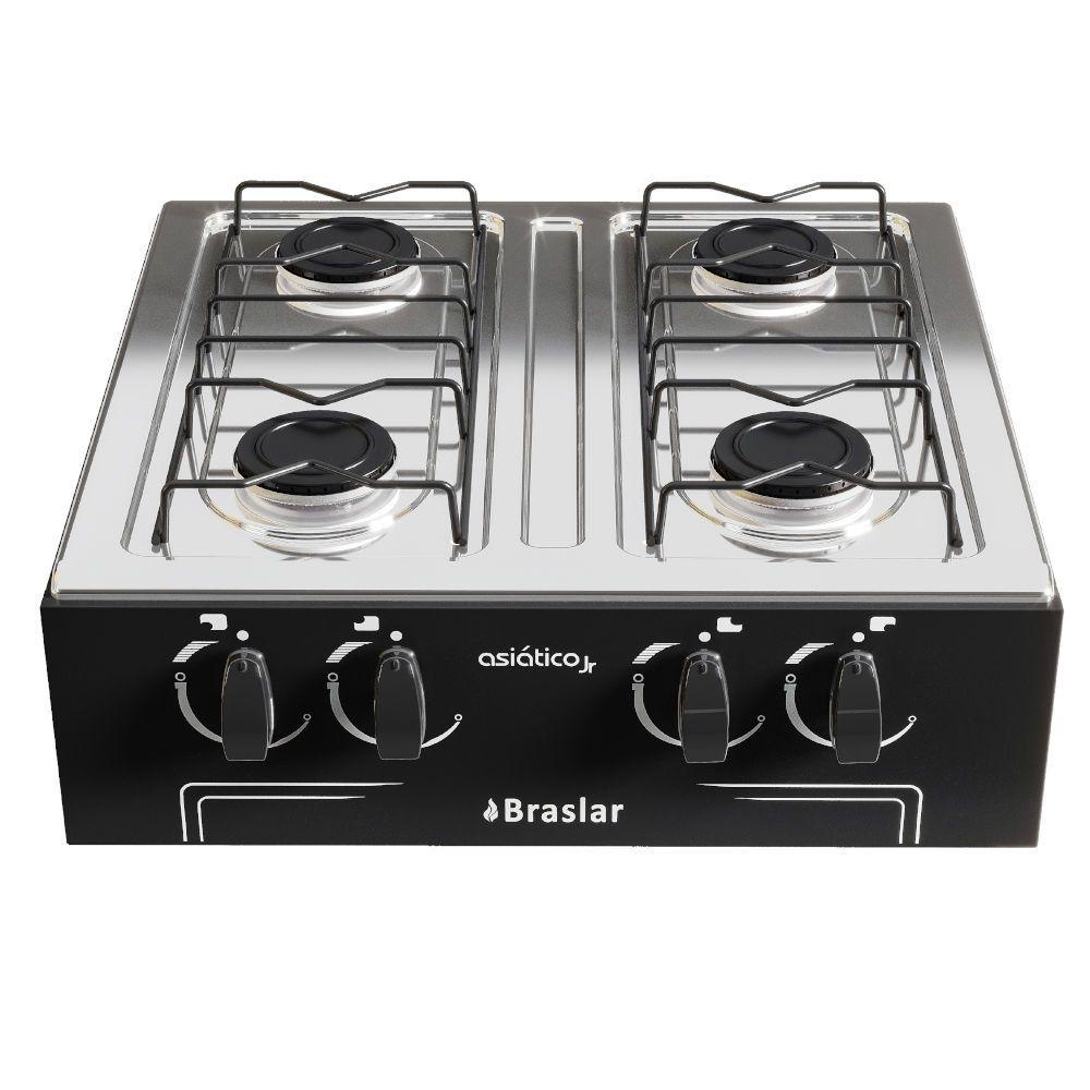 Fogão a Gás Braslar Asiático 4 Bocas Portátil Sem Forno Acendimento Manual Cozinhe com praticidade e agilidade com o Fogão à Gás Braslar Asiático 4 Bocas Preto Sem Forno! Desfrute de um design compacto e elegante que se encaixa perfeitamente em qualquer cozinha, seja ela pequena ou grande. As 4 bocas de queimadores esmaltados garantem cozimento uniforme e rápido, proporcionando mais economia de tempo e gás. Ideal para quem busca praticidade, o fogão Braslar Asiático não possui forno, tornando-o leve e fácil de transportar. Além disso, a mesa de aço inox facilita a limpeza e garante maior durabilidade. Com o Fogão à Gás Braslar Asiático, cozinhar se torna um prazer. Compre agora mesmo e aproveite todas as vantagens que ele oferece!!! Dimensões do produto (A x L x P): 20 x 49,5 x 57,5cm Peso Liquido (Kg): 3,050 Tipo de gás: GLP e Gás natural Potência queimador frontal direito: 2000w Potência queimador frontal esquerdo: 2000w Potência queimador traseiro direito: 2000w Potência queimador traseiro esquerdo: 2000w Especificações técnicas: Bocas: 4 Acendimento: Manual Botão removível: Não Alimentação: Gás Portátil: Sim Voltagem: Não possui Potência queimadores: 4 queimadores de 2000W cada Consumo (kWh): 7,5 Peso (kg): 3.05 Referência: ASIÁTICO Dimensões (AxLxP): 20 x 48,5 x 57,5cm Itens Inclusos: - 01 Fogão a Gás Braslar Asiático 4 Bocas Preto sem Forno - 04 Queimadores Família de 2000W - Manual do Produto Informações importantes: Imagens meramente ilustrativas. Objetos que ambientam as fotos não acompanham o produto. As tonalidades das cores dos produtos podem sofrer alterações de acordo com a calibração do seu monitor. Este produto não inclui montagem e instalação Registro INMETRO: 003578/2021 Garantia Fabricante: 12 meses
