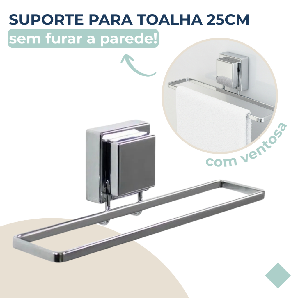 SOBRE O PRODUTO As toalhas de mãos e rosto ficam ainda mais destacadas em um toalheiro bonito e elegante. O aço Piatina (em formato achatado) dá o toque especial que o banheiro e o lavabo merecem. Além do tradicional tratamento superficial da Future - onde são aplicadas até 4 camadas de metal - os produtos são revestidos com uma camada extra do protetivo especial Rust Free, garantindo cores vivas e brilhantes, além de maior resistência contra ferrugem. Itens inclusos: 1 Toalheiro com Ventosa INSTALAÇÃO - Correto: superfícies lisas, brilhantes e totalmente planas como vidros, espelhos, azulejos, cerâmicas não porosa, pinturas lisas e brilhantes (epóxil) e laminados.- Incorreto: superfícies curvas, foscas ou porosas como papel de parede, madeira, parede de cimento, mármore, granito, etc. RECOMENDAÇÕES - Remover regularmente (a cada 3 meses) e reaplicar conforme instruções de montagem.- Nunca utilize este produto com pesos superiores ao indicado na embalagem.- Não utilize este produto para acomodar produtos frágeis e de valor.- Não use chaves, facas e objetos pontiagudos para retirar o produto da superfície. MEDIDAS - Profundidade: 7,5cm - Lagura: 25cm - Altura: 8cm - Peso: 0,20kg ESPECIFICAÇÕES - Máteria Prima: Aço Carbono + Plástico + Borracha - Cor/Acabamento: Cromado - Capacidade: 3kg