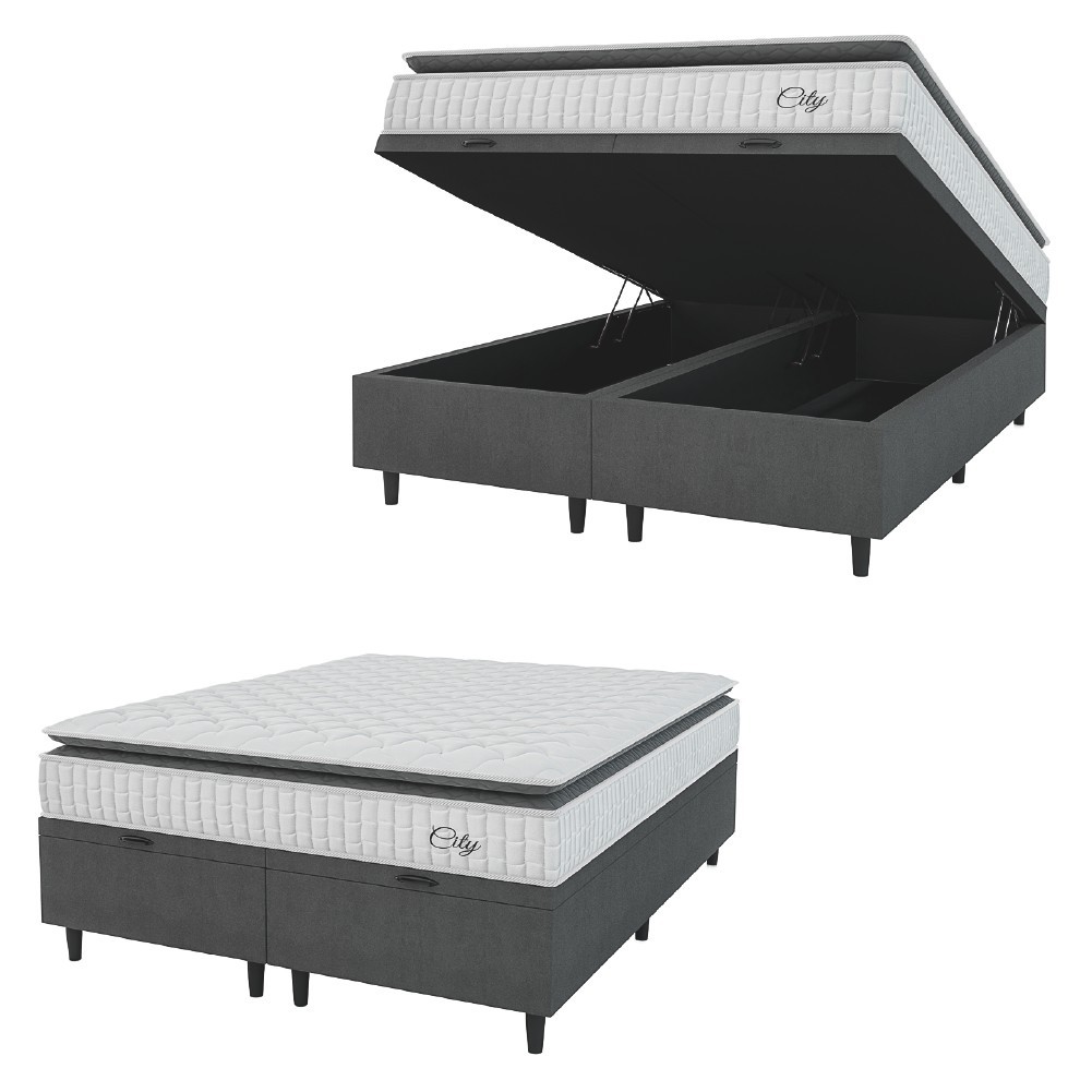 Descubra o extremo conforto da Cama Box Baú Colchão City, projetado para elevar a qualidade do seu sono proporcionando uma experiência única de descanso! Conta molas ensacadas de alta qualidade que trabalham em conjunto proporcionando resistência e aconchego na hora do descanso. Além de possuir pillow top que é uma camada extra de conforto proporciona uma experiência de sono inigualável. Invista na qualidade do seu sono e experimente garantia total de descanso e qualidade de vida! MEDIDAS: [ A ] = 64 cm / 58 cm (Sem pés) [ L ] = 193 cm [ P ] = 203 cm ALTURA DOS PÉS: 6 cm PESO SUPORTADO: 110 kg por pessoa PESO: 111,98 kg MODELO: Cama Box Colchão Baú Casal King Molas Ensacadas City Pillow 193x203x64cm Hellen MARCA DO COLCHÃO: Hellen MARCA DO BOX: Prince COR: Cinza / Branco REVESTIMENTO SUPERIOR E LATERAL: Tecido em poliéster Branco e Bege que permite melhor ventilação, proporcionando conforto e sensação agradável ao toque. REVESTIMENTO INTERIOR: Molejo estrutural em molas ensacadas individualmente, que permitem que o colchão suporte até 110kg por pessoa, oferecendo conforto e estabilidade durante o sono. REVESTIMENTO INFERIOR: Tecido antiderrapante PILLOW TOP: Sim, oferecendo ainda mais sensação de conforto ESPUMA: D20 POSSUI EPS: Sim TECIDO DO BOX: Suede PÉS: 12 MATERIAL DOS PÉS: Plástico ITENS INCLUSOS: 1 Colchão de 1,93m e 2 box baú de 0,96m GARANTIA COLCHÃO: 12 Meses pelo Fabricante GARANTIA BOX: 3 Meses pelo Fabricante A Esplanada Móveis se responsabiliza pela entrega dos produtos adquiridos até a porta de entrada ou portaria do endereço indicado, se a portaria do condomínio permitir, as entregas são efetuadas no piso térreo e é de responsabilidade do cliente a locomoção da mercadoria até seu apartamento ou casa. Confira as dimensões do produto e certifique-se de que estão adequadas aos elevadores, portas e corredores do local da entrega. Não fazemos a montagem, desmontagem do produto e/ou portas e janelas, transporte pela escada ou içamento pelo lado de fora do prédio. Não está incluso no serviço de entrega o deslocamento até o interior do apartamento, com ou sem elevador, ou deslocamento em locais de difícil acesso como escadarias.