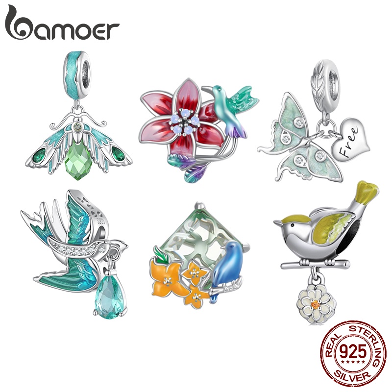 Bamoer 925 Silverr Fashion Swallow Beads E Bird Pendant Joalheria Presentes Para Mulheres