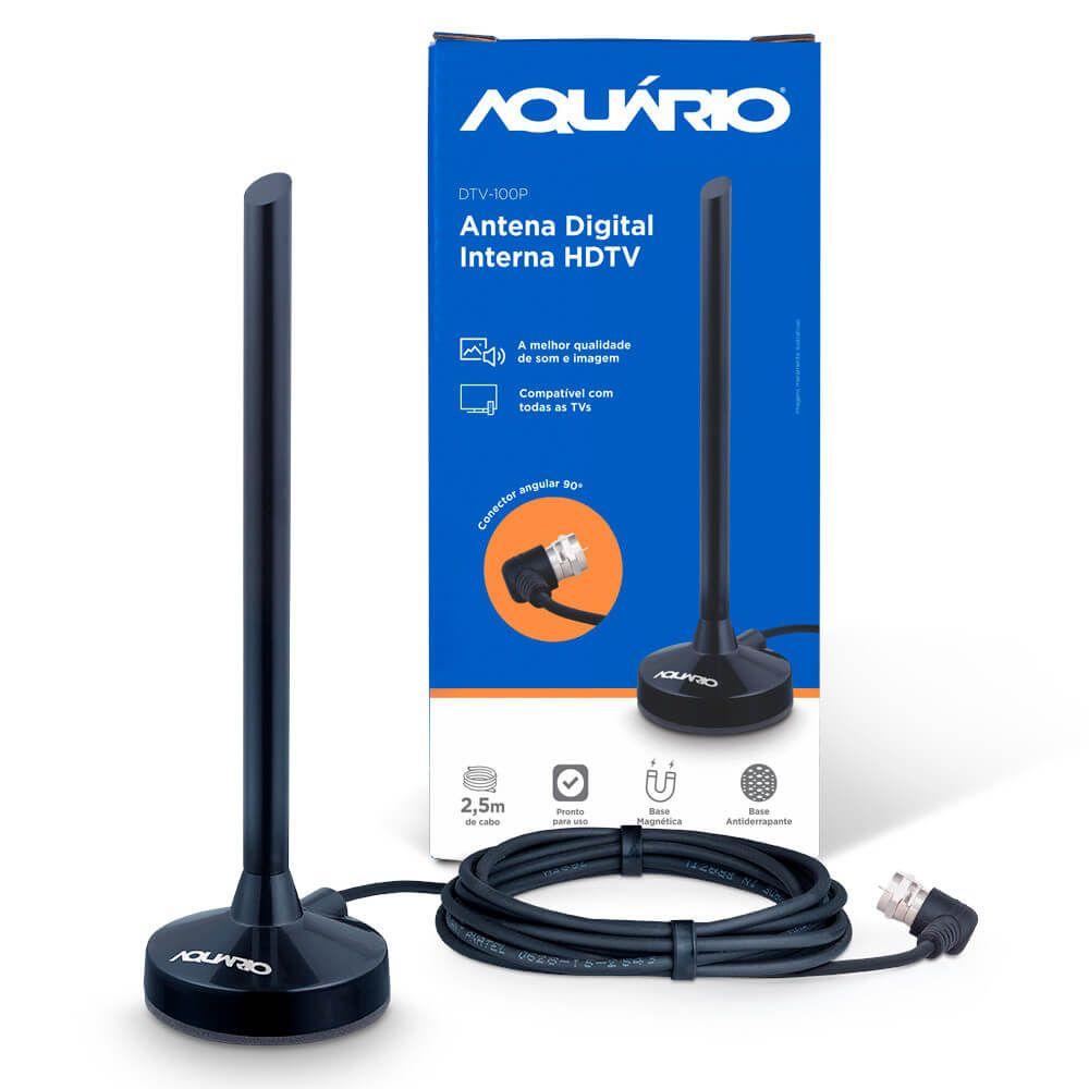 Antena Interna Aquário Digital HDTV, VHF, UHF, 4K e FM Prática, portátil e com máxima qualidade que só a Aquário pode oferecer, esta antena interna destaca-se por garantir ainda mais definição para o sinal digital dos canais abertos, captando em HDTV digital, VHF, UHF, FM e está preparada para a tecnologia 4K. Compacta, apresenta design funcional, moderno e ainda é compatível com todos os modelos de TVs e conversores disponíveis no mercado. Além disso, a DTV-100P possui base emborrachada antiderrapante para fixar a antena e não riscar os móveis. Tipo: Interna Sistema: Monoponto Conector: F macho de engato rápido Tipo de sinal: Digital Multimídia: Sim Qualidade do sinal: HDTV Acabamento: Polipropileno Impedância(Ohms): 75 Ganho(dBi): 3 Frequência(MHz): 54-806 MHz Comprimento do cabo(m): 2.5 Voltagem: Bivolt Bateria (mAh): N/A Peso (kg): 0.200 Dimensões (AxLxP): 15x4,5x4,5cm Referência: DTV-100P Itens Inclusos: - 1 Antena Interna Aquário Digital HDTV, VHF, UHF, 4K e FM Informações importantes: Imagens meramente ilustrativas. Objetos que ambientam as fotos não acompanham o produto. As tonalidades das cores dos produtos podem sofrer alterações de acordo com a calibração do seu monitor. Este produto não inclui montagem e instalação. Garantia Fabricante: 12 meses