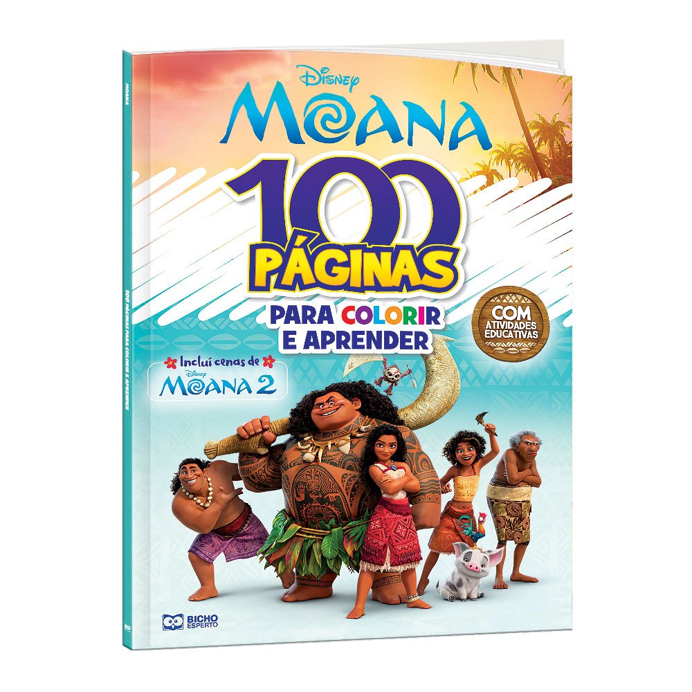 Brinque em mais de 100 páginas para colorir! Com a Coleção 100 Páginas para colorir use sua imaginação enquanto completa as atividades. Neste volume, Moana 2, você terá a companhia de Moana, Maui e toda a nova tripulação de Moana, para que tudo fique ainda mais alegre. A diversão é aqui, com a Bicho Esperto.