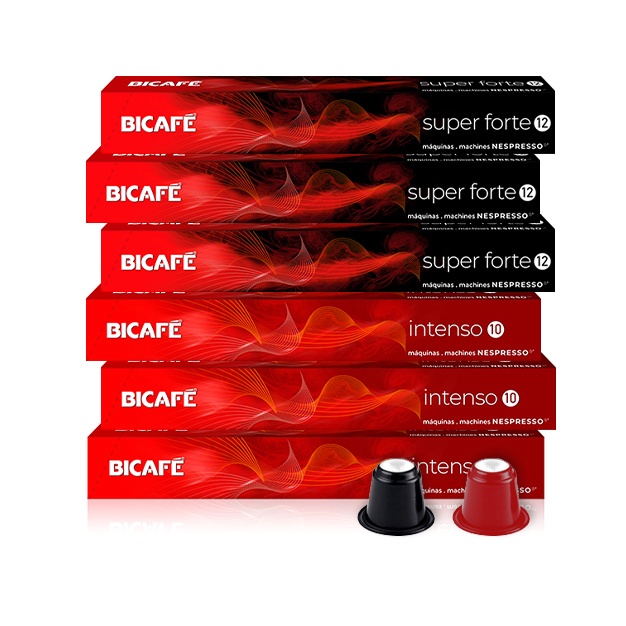 KIT 60 CÁPSULAS | Red Superforte & Red Intenso 60 cápsulas compatíveis com máquinas Nespresso®* Red Superforte: Uma seleção dos melhores cafés da América do Sul e Central, com uma torra especialmente desenvolvida para reforçar o caráter de cada origem. Super Forte é intenso e tem um creme denso, reforçados por um perfil frutado e uma nota final de cacau. Red Intenso: Caracteriza-se pelo seu perfil encorpado e contrastante, com intensas notas finais a cacau torrado. Permita-se desfrutar o que a vida tem de melhor e mergulhe no prazer de um produto único e singular. 3 Caixas de Café Red Superforte - intensidade 12 3 Caixas de Café Red Intenso - intensidade 10 Produzido em Portugal Grãos de várias origens 100% café torrado e moído 100% produzido com energia limpa Não é possível alterar o kit Conheça a nossa linha completa de cafés compatíveis com máquinas Nespresso* Café torrado moído | Modo de preparação: Proceda de acordo com o manual de instruções da sua máquina | Conservar em local fresco e seco | Peso líquido: 57 g (10 x 5,7 g) *Marca pertencente a terceiro sem ligação à Bicafé