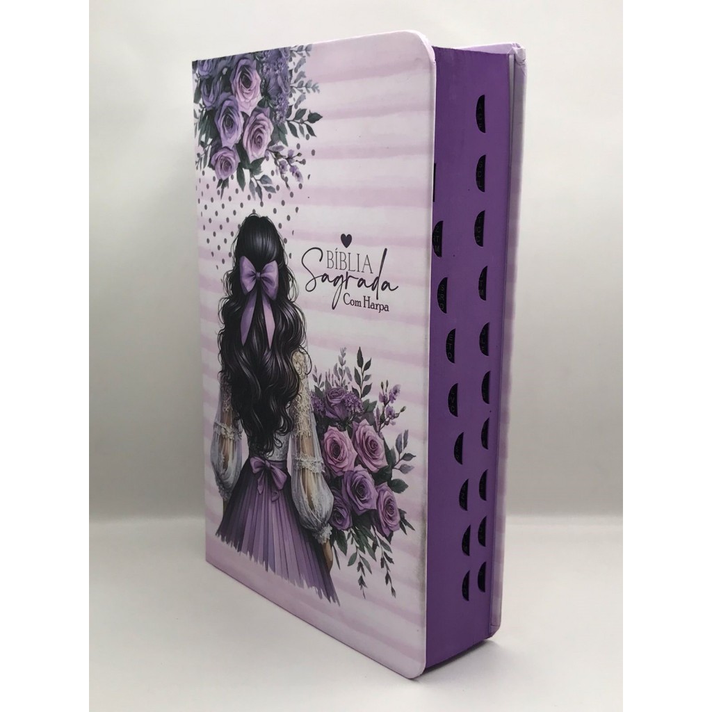 Bíblia Sagrada Tamanho Grande com Harpa Palavras de Jesus em Vermelho Capa Dura Rosas Lilás