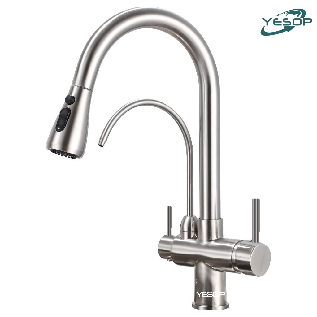 1) Acompanha filtro? R.: Não Não fornecemos filtros !! Nós fornecemos adaptadores !! Você pode comprar filtros para combinar com nossas torneiras. 2) Há algum filtro disponível na loja que seja adequado para este produto? R.: Não, mas nossas torneiras são compatíveis com a maioria dos tipos de filtros do mercado. 3) Esse produto tem três mangueiras, uma para água fria, outra para água quente e a última para filtro, certo? R.: Sim. TORNEIRA COZINHA GOURMET PREMIUM PARA FILTRO Torneira Gourmet é um produto novo, elegante e de excelente qualidade. Acabamento perfeito, oferece muita praticidade no o dia a dia. Com Misturador MONOCOMANDO de Água Quente e Fria, lhe proporciona a temperatura ideal. (Torneira não é Elétrica ) e uma saída individual para água filtrada. Para a filtração da água precisa ser instalado o filtro de água embaixo da pia e ligar o filtro a mangueira de entrada da água filtrada. A temperatura da água é trocada através do mesmo local de acionamento tanto para água quente quanto para água fria, devido ao sistema MONOCOMANDO, que por sua vez trás o conforto e economia de espaço na sua bancada, necessitando somente de 01 (uma) furação de diâmetro 32 mm-45 mm para a torneira misturadora ser instalada. Com uma ducha pré-lavagem flexível, possui suporte em mola gerando sustentação e segurança. A Torneira Gourmet, conta com uma saída de água tradicional com mecanismo 1/4 de volta e bica giratória, com arejador em aço inox com tela garantindo um bom e arejado fluxo de água para as atividades mais simples do dia-a-dia e outra saída com mecanismo de 1/4 de volta apenas para a saída de água filtrada, proporcionando conforto e saúde !!! Você tem dois registros individuais para acionamento da sua Torneira Gourmet: 1 - Saída individual para água filtrada. 2 - Jato Ducha ( 60 cm - mangueira ) com maior pressão e facilidade na hora da higienização de alimentos e louças, atende todas as necessidades. Torneira Gourmet é de Metal (cobre e zinco) tem 41 cm de altura, volante de alavanca trazendo mais leveza na abertura e fechamento. Seu movimento é de 360° podendo direcionar o jato d´água para diversas direções. Especificações: * Bitola: 1/2" * Ducha Manual: fácil encaixe * Furação da Bancada: 32 mm - 45 mm * Material: Aço inoxidável * Adaptador e Mangueira (50 cm) * PRESSÃO DE ÁGUA : 7mca - 40mca (metros de coluna d’água) Contém na Embalagem: * 1 Misturador * 2 Mangueiras Flexíveis de aço ( 50 cm ) para água quente e fria. * 1 Anel de Vedação * 1 Arruela de borracha * 1 Parafuso de Fixação * 1 Porca ::Perguntas frequentes do produto:: 1) - Torneira Gourmet possui misturador? R.: Sim. 2) - Torneira Gourmet é para água quente e fria? R.: Sim. sendo necessário o sistema de aquecimento da água em sua instalação. A torneira não tem aquecedor. 3) - Torneira Gourmet possui três entradas de água? R.: Sim. 4) - Torneira Gourmet vem completa? R.: Sim, conjunto completo para instalação. 5) O produto acompanha aquecedor? R.: Não. O sistema de aquecimento da água deverá ser adquirido com um profissional de caso não tenha instalado. 6) Posso usar somente com água fria? R.: Sim. para isto precisa instalar um adaptador "T" 7) Produto acompanha filtro ? R.: Não acompanha filtro