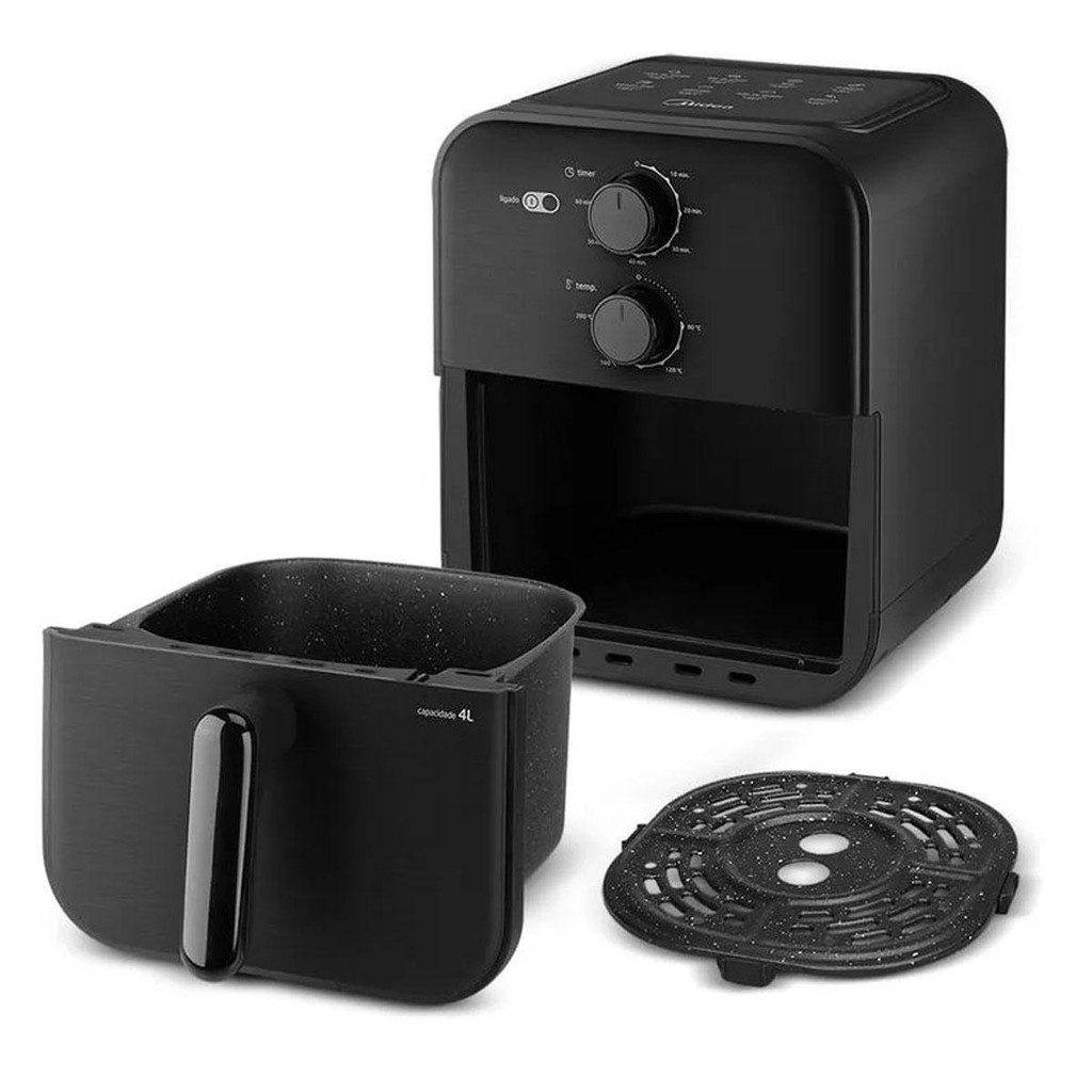 Maximize sua rotina de preparo de alimentos com a Fritadeira Elétrica Airfryer Midea Quadrada 4,0 Litros, desenvolvida para quem busca resultados premium, eficiência e refeições mais saudáveis. Com 1.500W de potência e tecnologia de circulação de ar quente em alta velocidade, ela prepara alimentos de forma rápida e uniforme, garantindo crocância perfeita e até 80% menos gordura que métodos tradicionais. O design quadrado permite otimizar o espaço e preparar porções maiores de maneira prática. O painel intuitivo oferece controle total: o seletor de temperatura atinge até 200 °C com precisão, enquanto o timer programável de 60 minutos com desligamento automático proporciona praticidade e segurança durante o uso. A limpeza é simples e rápida: o cesto e a cuba removíveis possuem revestimento antiaderente PFOA-Free, garantindo durabilidade e evitando que os alimentos grudem. Para maior segurança, a Airfryer conta com trava no cesto e proteção contra superaquecimento, oferecendo tranquilidade no uso diário. Detalhes técnicos essenciais: Porções generosas para toda a família. P reparo rápido e eficiente. Temperatura Máx.: 200 °C–controle preciso para diferentes receitas. Timer: até 60 minutos com desligamento automático. Formato: quadrado, otimiza o espaço da bancada. Limpeza fácil: peças removíveis e antiaderentes PFOA-Free. Segurança: trava no cesto e proteção térmica contra superaquecimento. Com a Airfryer Midea Quadrada 4,0L, você une praticidade, saúde e eficiência, preparando refeições crocantes, saborosas e mais leves, sem abrir mão da segurança e da qualidade no dia a dia.