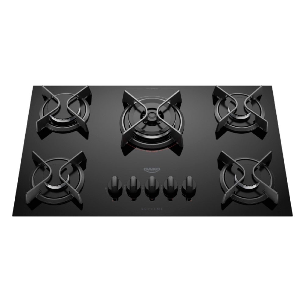 Fogão Cooktop Supreme 5 Bocas Acendimento Superautomático Dako Com um design moderno e acabamento sofisticado, o cooktop Supreme a gás conta Com acendimento superautomático para promover praticidade na hora de cozinhar, Mesa de vidro temperado que facilita a vida na hora da limpeza e trempes em ferro Fundido que oferecem segurança para as panelas. Características: Marca: Dako Modelo: Supreme Acendimento Superautomático Mesa de vidro temperado Trempes individuais em ferro fundido 1 boca Tripla Chama (3,25kW) 1 Mega Chama (2,85kW) Tipo de Acendimento: Superautomático Acabamento da Mesa: Vidro Temperado Funcionamento: Gás Trempes: Individual de ferro fundido com 4 pontos de apoio Botões Removíveis: Sim Dimensões: Altura: 46 cm Largura: 73,5 cm Profundidade: 12 cm Peso: 10,3 kg Garantia do fornecedor: 12 meses
