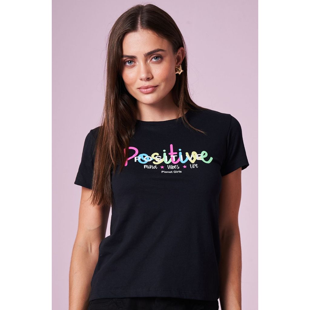 Camiseta Planet Girls: Vibre com Estilo e Positividade!A Camiseta Planet Girls de manga curta com estampa "Positive Mind" é a escolha perfeita para quem deseja irradiar boas vibrações e estilo. Com uma gola redonda e um caimento impecável, esta peça é feita de um tecido leve e respirável, ideal para os dias mais quentes. DETALHES QUE VOCÊ VAI AMAR SABER:* Manga Curta:Ideal para conforto e frescor em qualquer ocasião.* Estampa "Positive Mind,Vibes,Life": Uma mensagem que inspira e eleva o astral.* Gola Redonda:Design clássico que valoriza o visual.* Versatilidade de Estilo: Perfeita para usar com jeans, shorts ou saias, ideal para qualquer ocasião.Adicione um toque de positividade ao seu estilo com a Camiseta Planet Girls e mostre ao mundo sua essência vibrante!