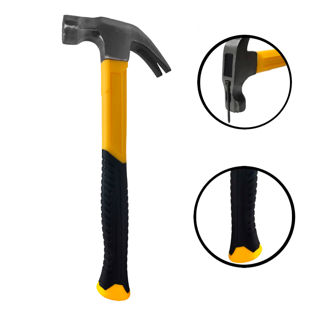 Distribuído Por Ismafer Ferramentas Cabeça é feita de aço, ferramenta temperada seletivamente (dureza 55HRc) e polida. Tem fixador magnético para pregos, que permite trabalhar com apenas uma mão. Cabo de fibra de vidro com revestimento de borracha amortiza o impacto, facilitando o manuseio. - Composição:- Aço Carbono; - Borracha; - Plástico Garantia: 3 meses SKU: 22335 Distribuído Por Ismafer Ferramentas