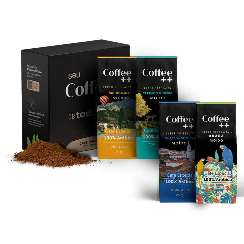 Kit 4 Pacotes Café Especial Torrado e Moído Coffee Mais Fazendas + Arara - 4 Pacotes de 250 gramas cada. Sobre este item: SEU KIT MOÍDO COM SUAS VARIEDADES FAVORITAS: Não sabe qual Café experimentar primeiro? Procurando o presente perfeito, mas não consegue decidir qual café enviar? Ou talvez você apenas goste de tomar sua bebida matinal para combinar com seu humor. Nosso Kit moído está aqui para ajudar! O kit moído inclui quatro pacotes de nossos cafés de origem única mais populares SABOR EXTRAORDINÁRIO: CLÁSSICO - notas de Chocolate com doce de Leite. CHAPADA DE MINAS - Notas sensoriais de frutas amarelas caramelizadas com chocolate. MANTIQUEIRA DE MINAS - Notas de licor de laranja e frutas amarelas. ARARA - Equilíbrio, delicadeza e doçura natural logo no primeiro gole. Assim, o café Arara mostra potência de sabor e notas de chocolate, caramelo, além de lembranças de frutas amarelas. Esse café 100% arábica tem o aroma como uma das características mais marcantes, ao lado da acidez baixa, corpo elevado e muito aroma. 100% ARÁBICA - O Coffee ++ Clássico oferece grãos superespeciais e 100% arábica, que são cultivados com processos criteriosos em altas altitudes no Brasil. Na xícara, esse café tem sabor marcante, doçura natural, notas sensoriais e aromas únicos. CAFÉ ESPECIAL X CAFÉ TRADICIONA - Café especial é a potência de sabor, com grãos 100% arábicas, aspectos sensoriais diferenciados, acidez equilibrada e doçura natural. Já o café tradicional pode ter a mistura de grãos Robustas (conilon), o que significa mais concentração de cafeína, amargor e ausência de aspectos sensoriais. Que tal abandonar o café queimado e conhecer o doce natural dos grãos especiais? CAFÉ ESPECIAL X CAFÉ TRADICIONAL - Café especial é a potência de sabor, com grãos 100% arábicas, aspectos sensoriais diferenciados, acidez equilibrada e doçura natural. Já o café tradicional pode ter a mistura de grãos Robustas (conilon), o que significa mais concentração de cafeína, amargor e ausência de aspectos sensoriais. Que tal abandonar o café queimado e conhecer o doce natural dos grãos especiais?