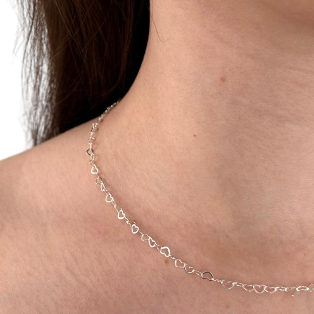Colar Choker Elos de Coração em Prata 925 Encante-se com a delicadeza e elegância do Colar Choker formado por elos de coração em Prata 925. Uma peça atemporal e versátil, perfeita para compor desde looks casuais até produções mais sofisticadas, realçando sua beleza em qualquer ocasião. Disponível em dois tamanhos, 40 cm ou 45 cm, o colar se ajusta perfeitamente ao seu estilo e conforto. Feito com Prata 925 de alta qualidade, a peça acompanha um certificado de garantia permanente do teor da prata, assegurando sua autenticidade e durabilidade. Para tornar sua experiência ainda mais especial, o colar é enviado com um saquinho de organza (sujeito à disponibilidade em estoque), ideal para armazenar com cuidado ou presentear alguém querido. Além de toda a sofisticação e qualidade, o colar oferece um valor super acessível, permitindo que você invista em um acessório único e cheio de charme sem comprometer seu orçamento. Adicione este colar incrível à sua coleção e desfrute da beleza de uma peça que nunca sai de moda!