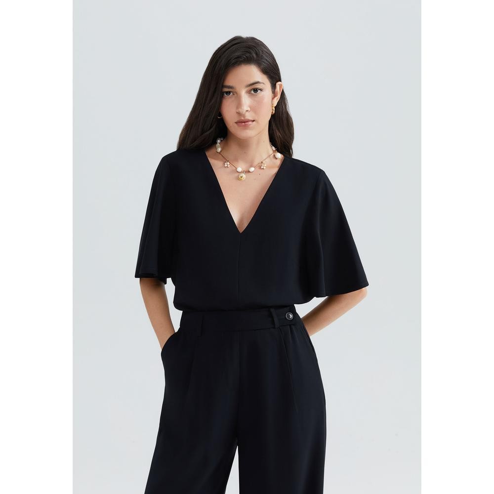 Blusa elaborada em tecido com toque macio como pêssego. Suas mangas amplas e costas mais longas que a frente oferece um caimento fluído e elegante.Detalhes da peça:Em tecidoPeach touchModelagem amplaCostas alongadaDecote VManga sinoRecorte no centro frente