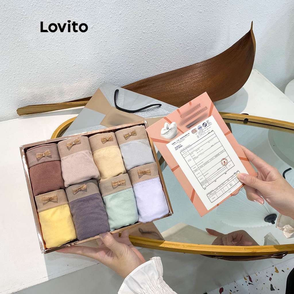 Lovito Casual Calcinha Feminina 8 Pçs Lisa Colorblock com Laço LNA15011 (Multicor) - 11% OFF | Women Clothes