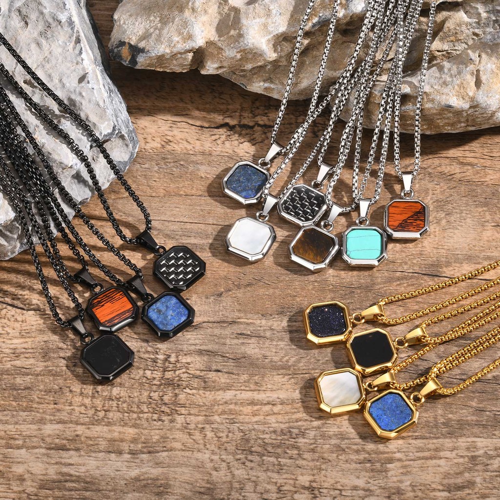 Vnox Moda Geométrica Quadrado Pingente Colar Para Homens Meninos , Casual Retro Esmalte De Aço Inoxidável Jóias Presente - 50% OFF | Fashion Accessories