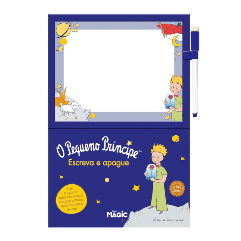 Livro O Pequeno Príncipe | Escreva e Apague Divirta-se aprendendo a escrever com o Pequeno Príncipe! Use a caneta para treinar suas letras e, quando terminar, é só apagar e começar de novo. Aprenda, brinque e crie suas próprias histórias — quantas vezes quiser! Especificações do livro: Título: O Pequeno Príncipe | Escreva e Apague Ano de Edição: 2024 Capa: Brochura Acabamento: Laminação Brilhante Miolo: Papel Couchê Páginas: 16 Dimensões: Altura: 31 cm Largura: 22 cm Profundidade: 1,5 cm Peso: 0,200 kg ISBN: 9786526106433 Editora: Magic Kids