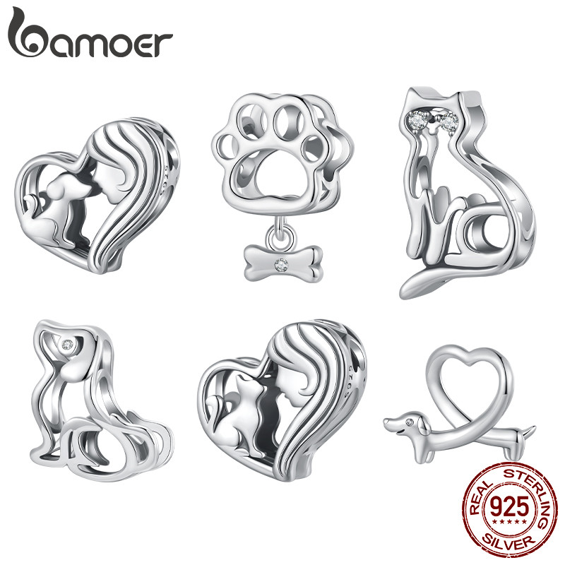 Bamoer 925 Sterling Sliver Charm Cute Cat Dog Pingente Série De Acessórios Para Pulseira