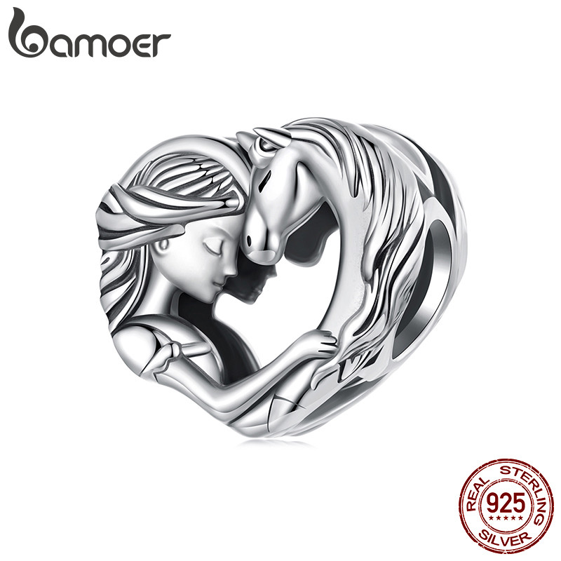 Bamoer 925 Sterling Sliver Charme Cavalo Amante Menina Pingente DIY Para Pulseira Presentes