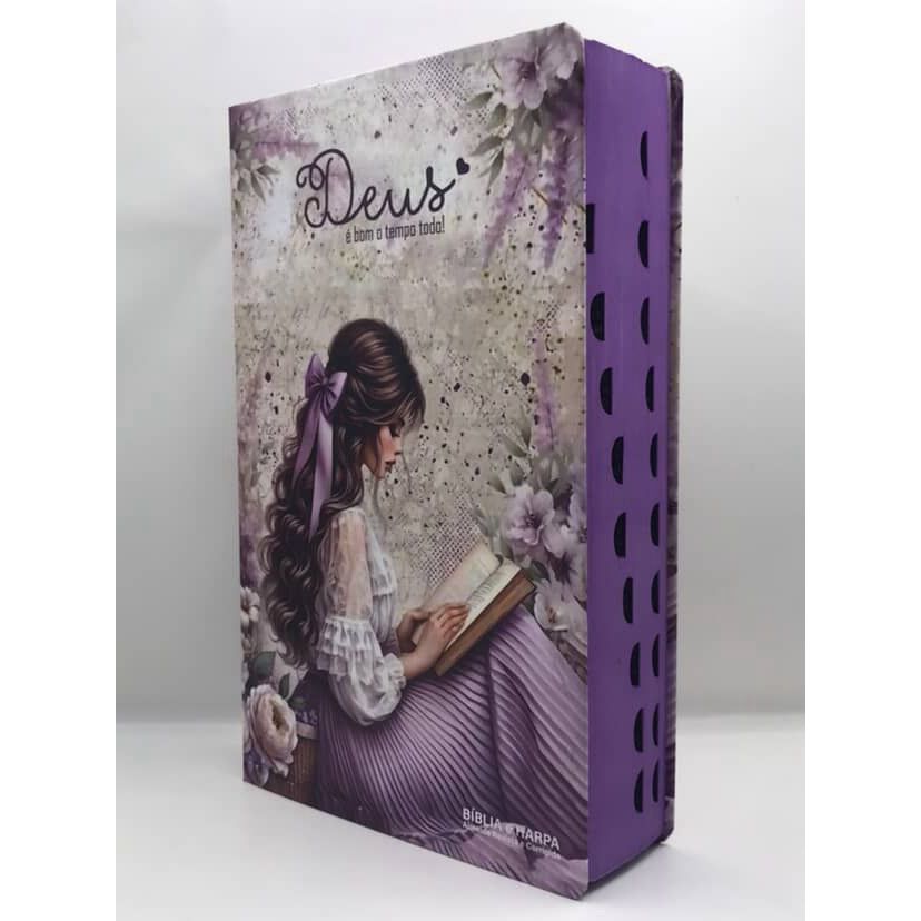 Bíblia Sagrada Tamanho Grande Capa Dura Com Harpa Palavras de Jesus em Vermelho Menina Laço Lilás