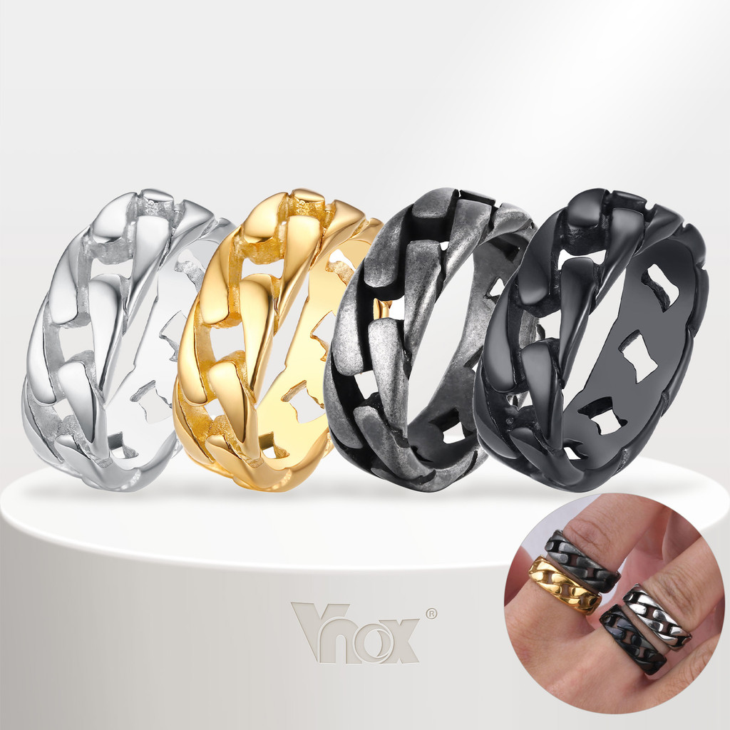 Anel De Corrente De Elo Vnox Para Homens E Mulheres , Retrô De Aço Inoxidável , Acessórios De Joias Da Moda , Presentes - 50% OFF | Fashion Accessories
