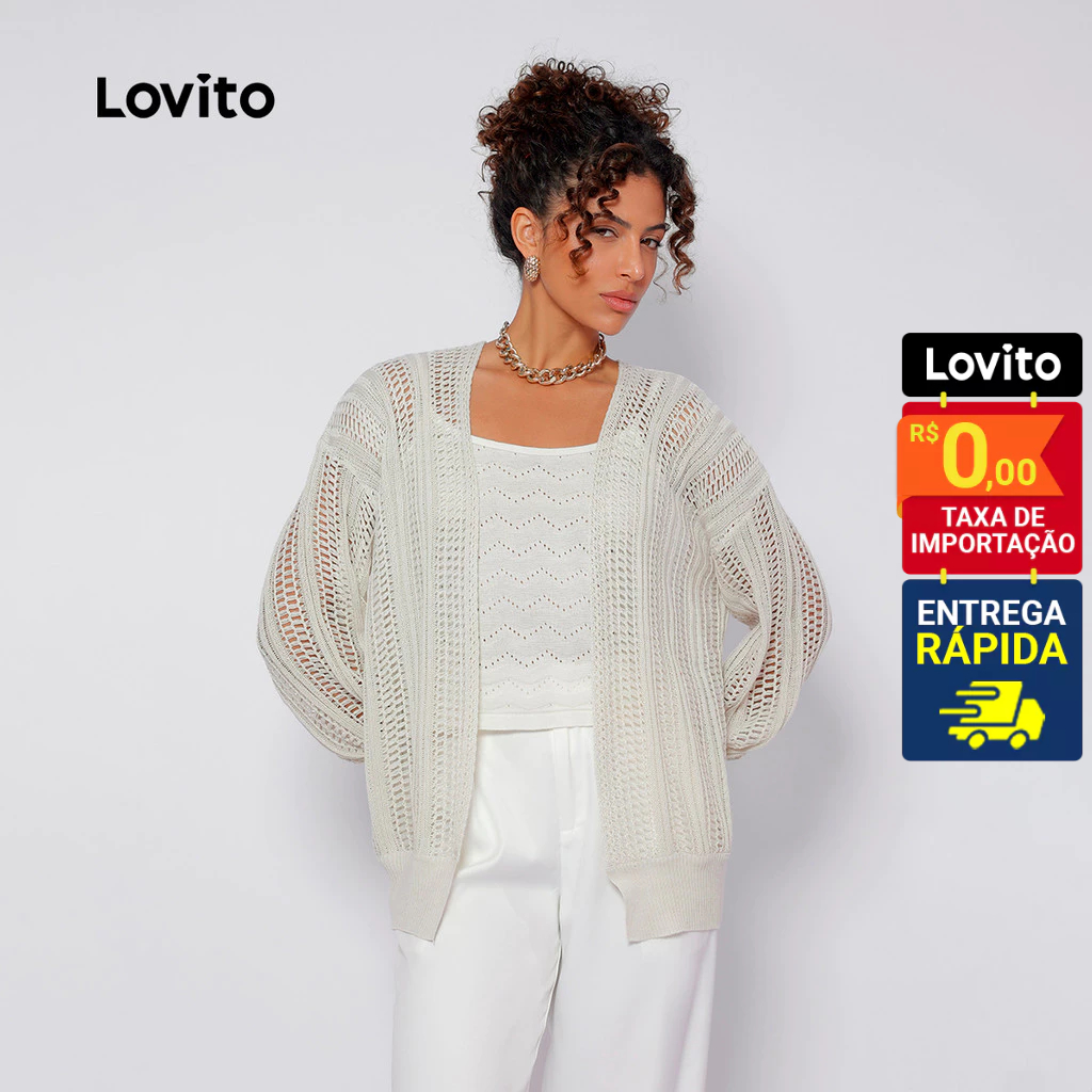 ✅DESTAQUES -❤️Fresco e Confortável ✅DESCRIÇÕES Estampa: Lisa Estilo: Casual Tamanho Plus: Não Composição: 100% Poliéster Tipo de Caimento: Solto Transparência: Não Elasticidade: Elástico Médio Região de Origem: Brasil ✅O PACOTE INCLUI 1 Cardigan ✅INTRODUÇÃO À LOVITO A Lovito é uma marca emergente que acredita no poder feminino, comprometida em oferecer opções de roupas elegantes e acessíveis para diferentes estilos, necessidades e identidades. Acreditamos que a moda deve ser divertida, libertadora e fazer você se sentir bem. Afinal, o melhor acessório para qualquer look é a autoconfiança. ✅NOTAS DE COMPRA Por favor, consulte sua altura e a tabela de tamanhos antes de comprar. Pode haver uma diferença de 1 a 2 cm devido à medição manual. Todas as fotos dos produtos nesta loja são 100% reais. Devido às diferenças de iluminação e tela, é normal haver uma sutil diferença de cor e erros reais. Siga nossa loja e descubra novos itens e as melhores ofertas para você!! Se tiver alguma dúvida, entre em contato conosco pelo chat e responderemos o mais breve possível. 😊