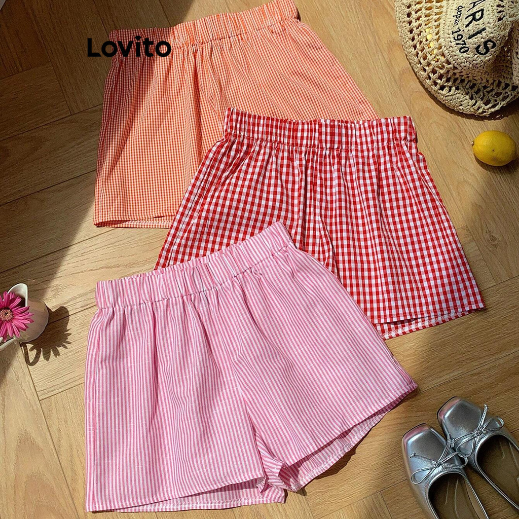 (Trendy) Lovito Shorts Boho Xadrez Básico De Verão/Primavera Para Mulheres LBL15341 - 37% OFF | Women Clothes