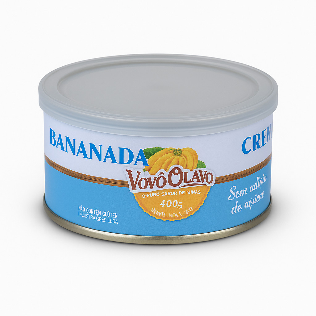A Bananada Vovô Olavo Sem Açúcar 400g é produzida apenas com banana madura, sem adição de açúcares ou conservantes. Ideal para quem busca uma alimentação mais equilibrada sem abrir mão do sabor. Vem em lata com tampa plástica, garantindo praticidade e conservação. Um doce saudável e nutritivo, com o sabor da roça mineira! ℹ️ Benefícios: ✅ 100% banana – sem adição de açúcar ✅ Sem glúten – ideal para dietas restritivas ✅ Lata com tampa – conserva por mais tempo ✅ Textura cremosa e sabor natural ✅ Ideal para lanches, receitas ou consumo direto ℹ️ Ficha Técnica: ✅ Produto: Bananada Cremosa Sem Açúcar ✅ Marca: Vovô Olavo ✅ Peso: 400g ✅ Ingrediente: Banana ✅ Glúten: Não contém ✅ Açúcares adicionados: Não contém ✅ Conservantes: Não contém ✅ Embalagem: Lata metálica com tampa plástica ✅ Origem: Ponte Nova – Minas Gerais