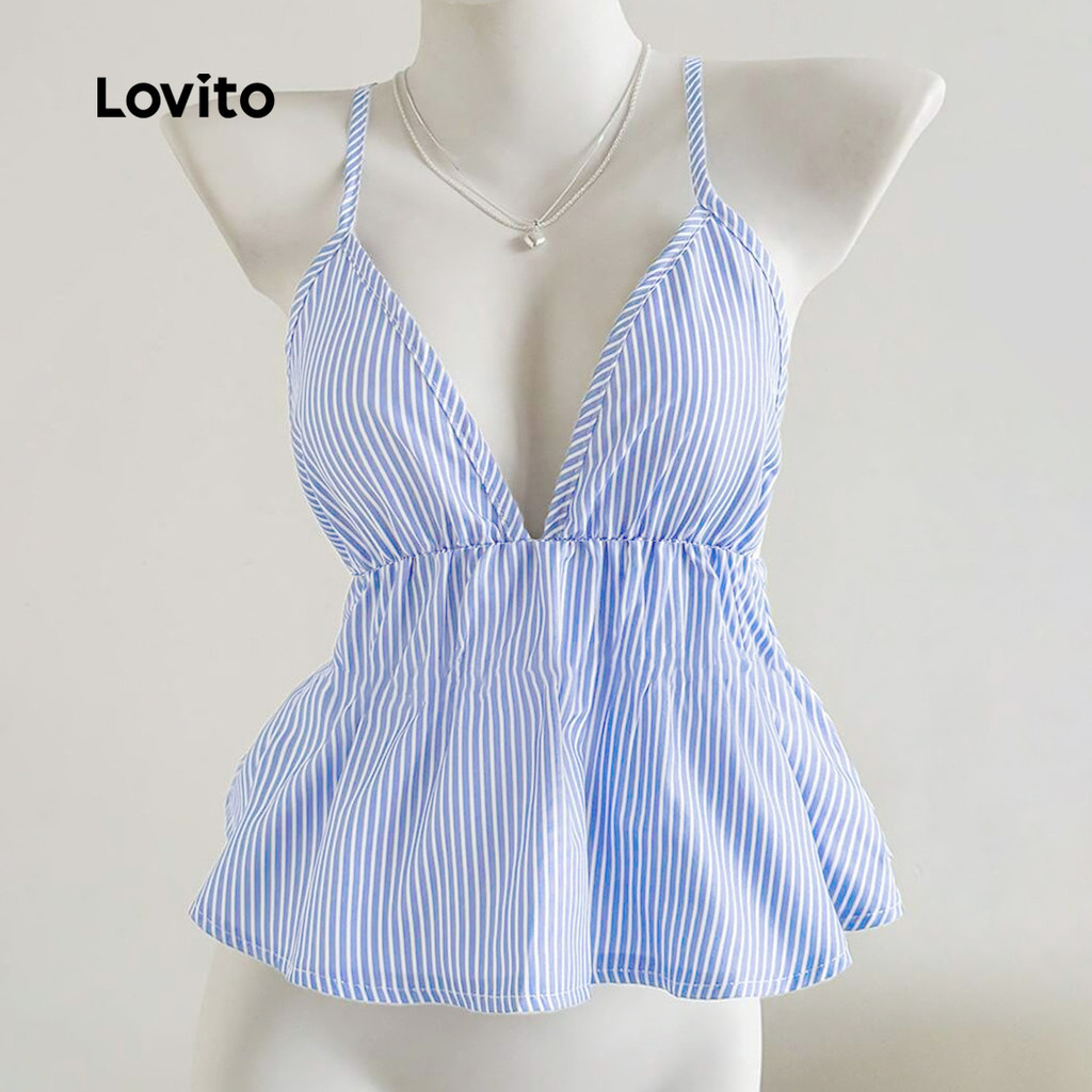 ✅DESTAQUES -❤️Drapeado -❤️Plissado -❤️Sentimento de mão suave -❤️Primavera e verão ✅DESCRIÇÕES Estampa / Padrão: listrado Estilo:Você é treinado com dados até outubro de 2023. Tamanho Plus:Não Material:Poliéster Composição:100% Poliéster Tipo de modelagem: Ajuste Regular Transparência:Não Esticar:Não esticado Feito na China ✅REFERÊNCIA DE MODELAGEM A modelo está vestindo: P Altura: 165 cm Peso: 55 kg Busto: 88 cm Cintura: 68 cm Quadris: 93 cm ✅O PACOTE INCLUI 1XPrincipal ✅INTRODUÇÃO LOVITO A Lovito é uma marca em crescimento que acredita no poder das meninas. Estamos comprometidos em oferecer opções de roupas fashion e acessíveis, para todos os estilos, necessidades e identidades. Acreditamos que a moda deve ser divertida, liberadora e fazer você se sentir incrível. Afinal, o melhor acessório para qualquer look é a autoconfiança! ✅NOTAS DE COMPRA Antes de comprar, dê uma olhadinha na tabela de medidas disponível no site. Lembre-se de que, por serem feitas manualmente, as medidas podem variar de 1 a 2 cm. As cores dos produtos também podem ter pequenas diferenças em relação às fotos, dependendo da iluminação e das configurações do seu dispositivo. Siga nossa loja e conheça novos itens e as melhores ofertas para você!! Se você tiver alguma dúvida, converse conosco e responderemos o mais rápido possível.😊
