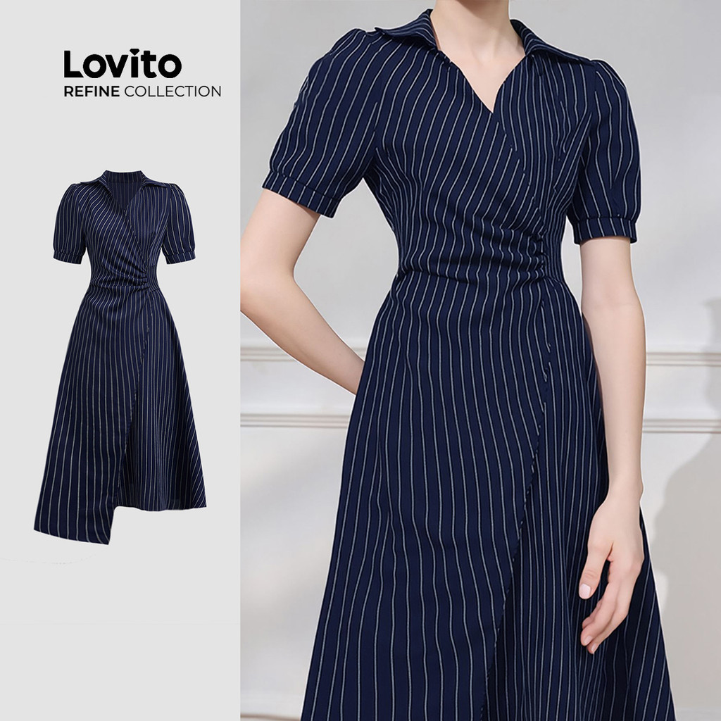 (Lovito Refine) Vestido Elegante Envelope de Primavera/verão Azul-marinho para Mulheres LR18L135 - 30% OFF | Women Clothes