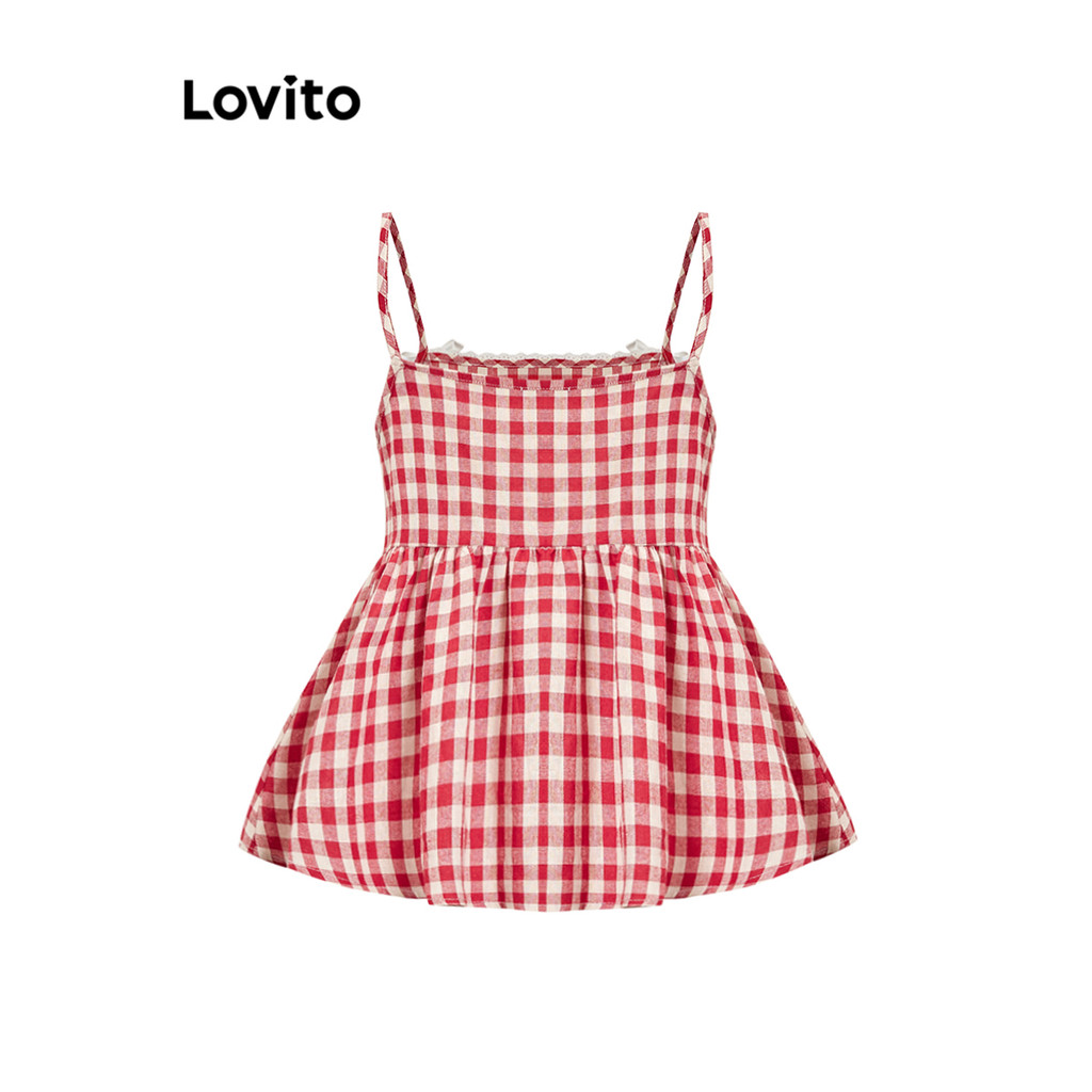 (Trendy) Lovito Regata Fofa Guingão Com Babados No Pescoço E Laço Regata Feminina L97AD078 (Multicolorido) - 29% OFF | Women Clothes