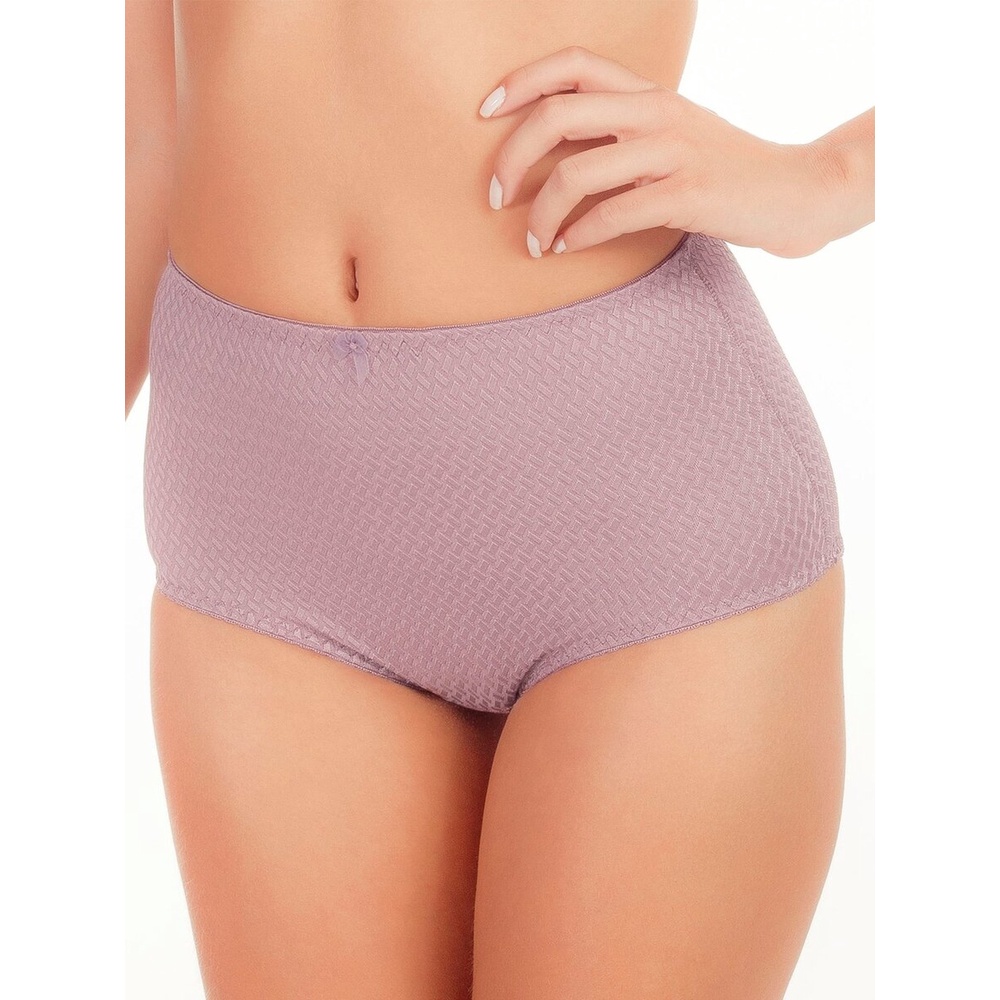 Características: Calcinha Plus Size com cintura alta e laterais largas. Confeccionada em tecido com fio de Lycra®. Textura geométrica em relevo de design consagrado. Frente adornada com lacinho de cetim. Com costuras laterais e traseira. Modo de Lavagem: Lavar a mão. Não usar alvejante. Não secar em tambor. Não passar a ferro. Não limpar a seco. Composição: Corpo: 88% Poliamida e 12% Elastano. Forro fundo: 100% Algodão.