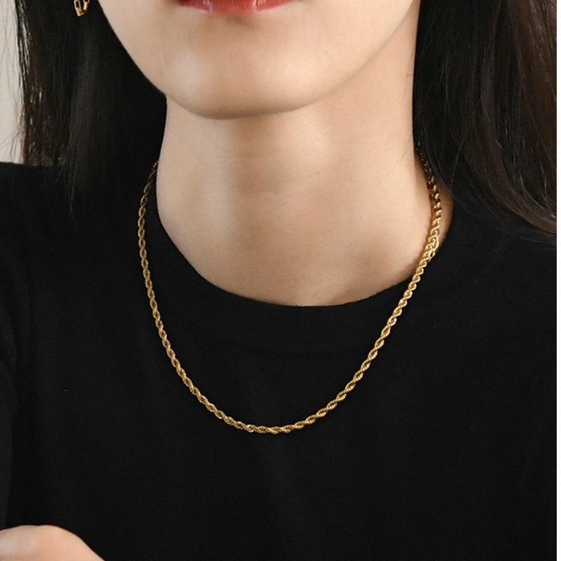 Vnox Colar com Corrente de Corda Trançada de Aço Titânio Dourado Cordão Estiloso de 2-5mm para Festa Joia Unissex - 17% OFF | Fashion Accessories