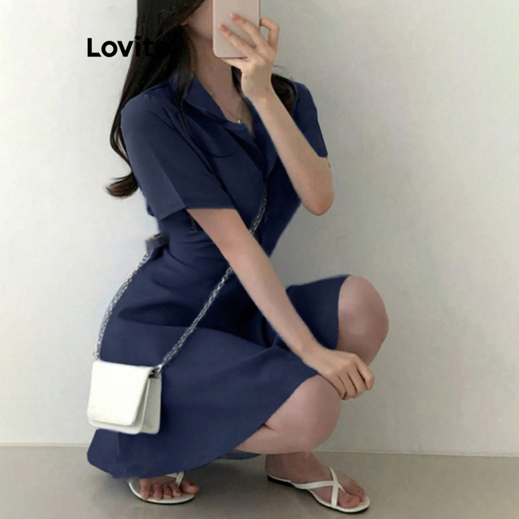 (Trendy) Lovito Vestido Casual Vestido Plissado Liso Para Mulheres L99ED190