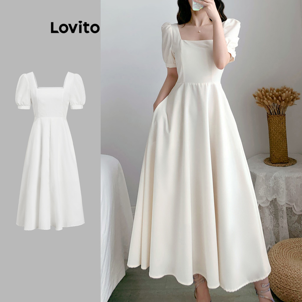 Lovito x Glenda Vestido Elegante Bolso Vestido De Baile Com Gola Quadrada Vestido De Para Mulheres LEX01047 - 41% OFF | Women Clothes