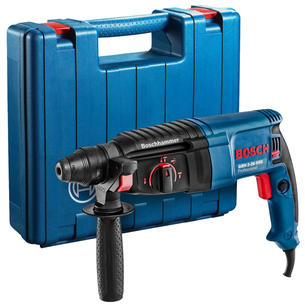 Martelo Perfurador Rompedor Bosch GBH 2-26 DRE 800W 2,7J EPTA em Maleta Vantagens: - O Martelete Perfurador Rompedor Bosch GBH 2-26 DRE é o mais rápido para perfurações em concreto e cinzelamentos na construção. Possui potente motor de 800W e interruptor eletrônico, ideal para instalações em geral, sistema de encaixe SDS-plus para trocas rápidas de acessórios, oferece mesma potência em ambos sentidos de giro e embreagem de segurança, oferecendo proteção ao operador em caso de travamento do acessório. - O Martelete mais rápido para o uso diário em perfurações e cinzelamentos. Função de bloqueio de impactos para perfuração de madeira e metal. Porta escovas rotativo: oferece a mesma potência de trabalho nos 2 sentidos de giro. Embreagem de segurança para maior proteção do usuário. Cabo com esfera de articulação para evitar rompimentos prematuros. - Uso industrial com 2 anos de garantia. Características: - Bosch Heavy Duty; - Equipamento rolamentado; - Possui velocidade variável; - Acabamento da ferramenta: Poliamida, metal e elastômero; - Acabamento do cabo: Borracha, cobre; - Comprimento do cabo (m): 4; - Tipo de embalagem: Maleta plástica; - Público Alvo: Pedreiros, instaladores de moveis, de cortinas, empreiteiros, eletricistas, encanadores, instaladores de ar condicionado, instaladores de tela de proteção, portões; - Uso indicado - Aplicação em material: perfurações com e sem impacto e cinzelamentos. Dados Técnicos: - Tensão: 110V ou 220V (não é bivolt); - Potência nominal absorvida: 800W; - Energia de impacto: 2,7 J; - Número máximo de impactos: 0 - 4.000 ipm; - Nº de rotações nominais: 0 - 900 rpm; - Suporte da ferramenta: SDS Plus; - Dimensões do produto (AxLxP): 21x8,3x37,7 cm; - Peso: 2,8 kg; Faixa de Perfuração: - Ø de perfuração em concreto, brocas para martelo: 4 - 26 mm; - Ø máx. de perfuração alvenaria, brocas de coroa oca: 68 mm; - Ø máx. de perfuração em metal: 13 mm; - Ø máx. de perfuração em madeira: 30 mm; - Faixa apl. opc. em concreto, brocas para martelo: 8 - 16 mm. Valores Totais de Vibração (Perfuração com Percussão em Concreto): - Valor de emissão de vibrações ah: 17,5 m/s²; - Incerteza K: 1,5 m/s². Valores Totais de Vibração (Cinzelamento): - Valor de emissão de vibrações ah: 9,5 m/s²; - Incerteza K: 1,5 m/s². Itens Inclusos: - 1 Martelo perfurador rompedor GBH 2-26 DRE; - 1 Limitador de profundidade; - 1 Empunhadeira auxiliar; - 1 Maleta de transporte; - 1 Manual de Instruções.