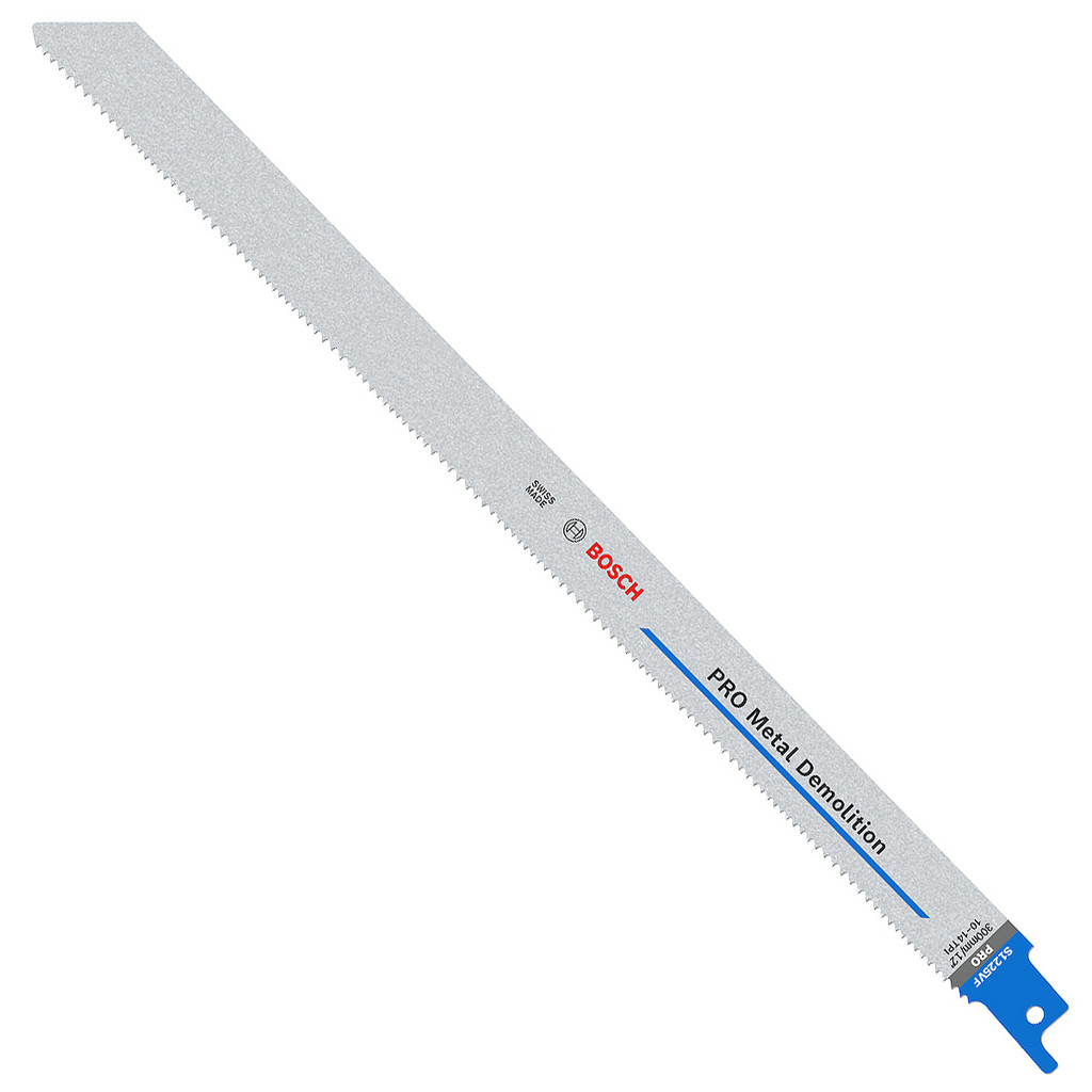 Lâmina de serra sabre S1225VF Heavy for Metal Bosch Vantagens: - A lâmina de serra sabre S1225VF Heavy for Metal efetua cortes lisos e sem esforço em metal. O material de base grossa (1,25 mm) oferece estabilidade para demolições em metal. Além disso, a geometria dos dentes vario da lâmina de serra sabre está otimizada para cortes fáceis, confortáveis e de vibração reduzida. Feita da liga bimetálica (BIM), a tira de dentes em aço rápido endurecido (HSS), especialmente formulada, está ligada a um corpo de aço carbono (HCS) muito flexível, otimizada para cortar aço de resistência regular em aplicações de demolição. O passo dos dentes vario (1,8/2,6 mm) pode ser utilizado em tubos e perfis de 2 mm a 10 mm de espessura de parede. A lâmina está equipada com um comprimento longo de 300 mm, garantindo uma capacidade de corte até 250 mm. Para utilização com serras sabre com sistemas de encaixe universal com 1/2 polegada; - Uso com 6 meses de garantia Bosch. Características: - Tipo de embalagem: Cartela de papelão com furo Euro; - Acabamento do acessório: Aço bimetálico; - Uso indicado: Metais ferrosos, chapas com espessura de até 250 mm, plástico, epóxi (resina epóxida) com espessura de até 250 mm; - Para quais ferramentas se aplica: Serras sabre; - Público Alvo: Serralheiros, metalúrgicos, manutenção industrial, desmontes de carros. Dados Técnicos: - Comprimento útil (mm): 280; - Comprimento total (mm): 300; - Altura (mm): 19; - Largura (mm): 1,25; - Encaixe: S; - TIP (Dentes por polegada): 10+14; - Espaço entre os dentes (mm): 1,8/2,6; - Tipo: S1225VF; - Peso (kg): 0,262. Componentes incluídos na embalagem: - 1 Lâmina de serra sabre S1225VF Heavy for Metal.