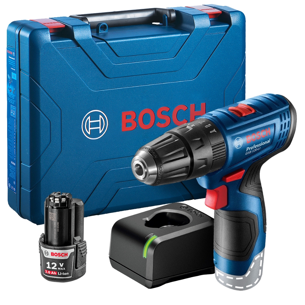 Parafusadeira e Furadeira de Impacto a Bateria Bosch GSB 120-LI 12V com 1 Bateria 2,0Ah, 1 Carregador Rápido BIVOLT Vantagens: - A Parafusadeira e Furadeira de Impacto a Bateria de 3/8" Bosch GSB 120-LI, 12V, possui alta performance para trabalhos mais pesados com torque de 30/14 Nm. Além de ser super leve e compacta, vem com sistema inteligente ECP que protege eletronicamente as células da bateria garantindo maior vida útil; - A mais compacta da categoria com apenas 188 mm de comprimento. Bateria inteligente não sobreaquece devido a tecnologia ECP que protege eletronicamente suas células. A melhor opção em parafusadeira e furadeira de impacto 12V do mercado: pequena, rápida e eficiente!; - Gatilho eletrônico com velocidade variável e reversível, duas velocidades 0 – 400 rpm / 1500 rpm; - Mandril de aperto rápido sem necessidade de chave; - Ideal também para perfurações com impacto 0 – 22500 ipm em alvenaria; - Ferramenta 100% Compatível com Baterias e Carregadores 12V Bosch; - Uso profissional com 1 ano de garantia Bosch. Características: - Equipamento Bosch Professional; - Possui velocidade variável (2 vel.); - Possui controle de torque; - Possui fonte de luz; - Acabamento da ferramenta: Poliamida, metal e elastômero; - Acabamento do cabo: Borracha e cobre (carregador); - Tipo de embalagem: Maleta Plástica; - Uso indicado: Perfuração e parafusamento em metal, madeira e alvenaria, empresas de montagem e manutenção industrial, aperto de parafusos em geral, instalação de sistemas de segurança e ar condicionado, montadores de móveis, carpinteiros e indústrias e construtoras em geral; - Público Alvo: Marcenarias, instalação e manutenção em geral, carpinteiros, montadores de móveis, montadores de estandes, montadores de lojas, eletricistas, instaladores de ar Condicionado. Dados Técnicos: - Voltagem da bateria: 12V; - Amperagem da bateria: 2.0 Ah; - Número de Células de íons de lítio: 3; - Conteúdo da bateria de íons de lítio: 24; - Mandril: 3/8" - 10 mm; - Torque (Suave/Duro): 14 / 30 Nm; - Nº de rotações em vazio (1ª Velocidade): 0 - 400 rpm; - Nº de rotações em vazio (2ª Velocidade): 0 - 1.500 rpm; - Tipo de bateria: Lítio; - Nº máx. de impactos: 22.500 ipm; - Amplitude de aperto (Mínimo/Máximo): 0,8 / 10 mm; - Configurações de torque: 20 + 2; - Diâmetro máximo do parafuso: 8 mm; - Dimensões do produto (AxLxP): 5x19x18,8 cm; - Peso líquido somente do produto com bateria: 1,06 kg. Diâmetro de Perfuração: - Ø máx. de perfuração em madeira: 20 mm; - Ø máx. de perfuração em aço: 10 mm; - Ø máx. de perfuração em alvenaria: 8 mm. Valores Totais de Vibração (Perfurar Metal): - Valor de emissão de vibrações ah: 1,4 m/s²; - Incerteza K: 1,5 m/s². Valores Totais de Vibração (Perfurar com Percussão em Alvenaria): - Valor de emissão de vibrações ah: 10,2 m/s²; - Incerteza K: 1,5 m/s². Valores Totais de Vibração (Parafusar): - Valor de emissão de vibrações ah: 0,8 m/s²; - Incerteza K: 1,5 m/s². Componentes incluídos na embalagem: - 1 Furadeira de Impacto / Parafusadeira a bateria GSB 120-LI; - 1 carregador GAL 12V-20; - 1 bateria 12V Max de 2,0 Ah Li-Ion; - 1 Maleta de transporte; - 1 manual de instruções; - 1 manual de instruções para carregador GAL 12V-20.